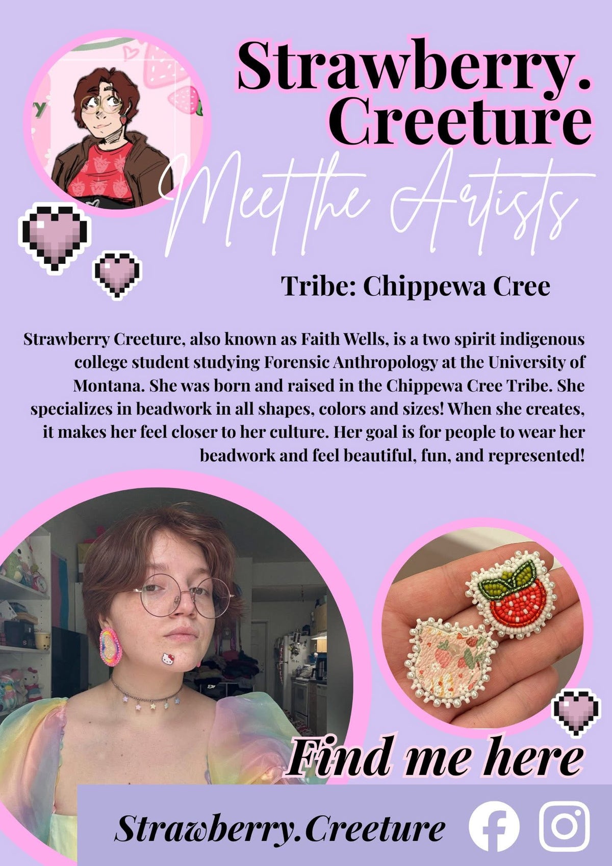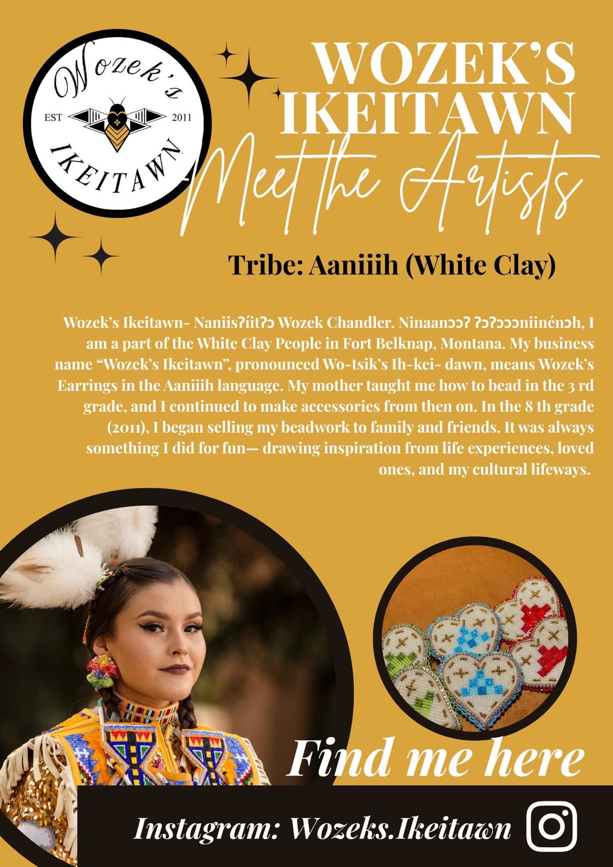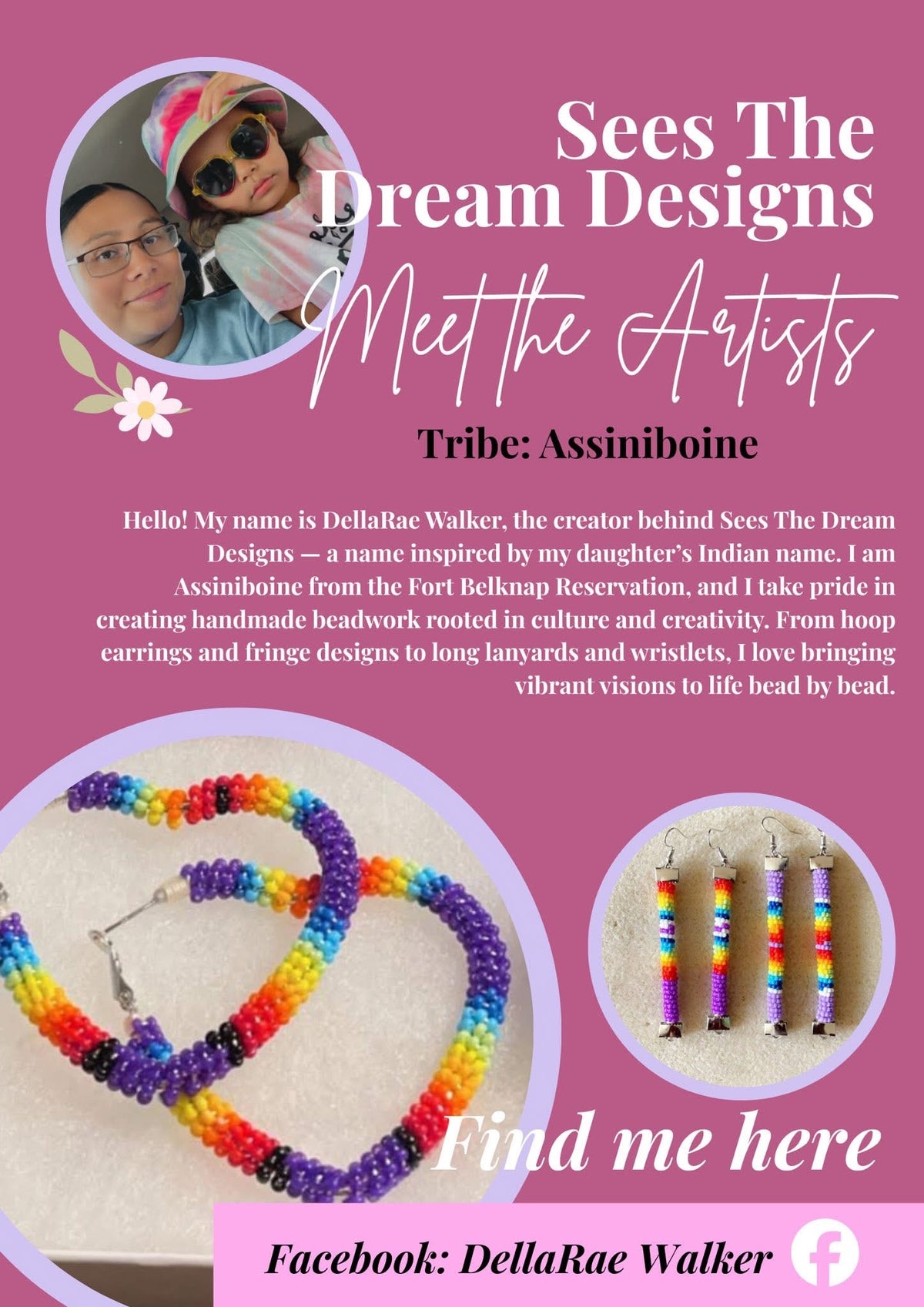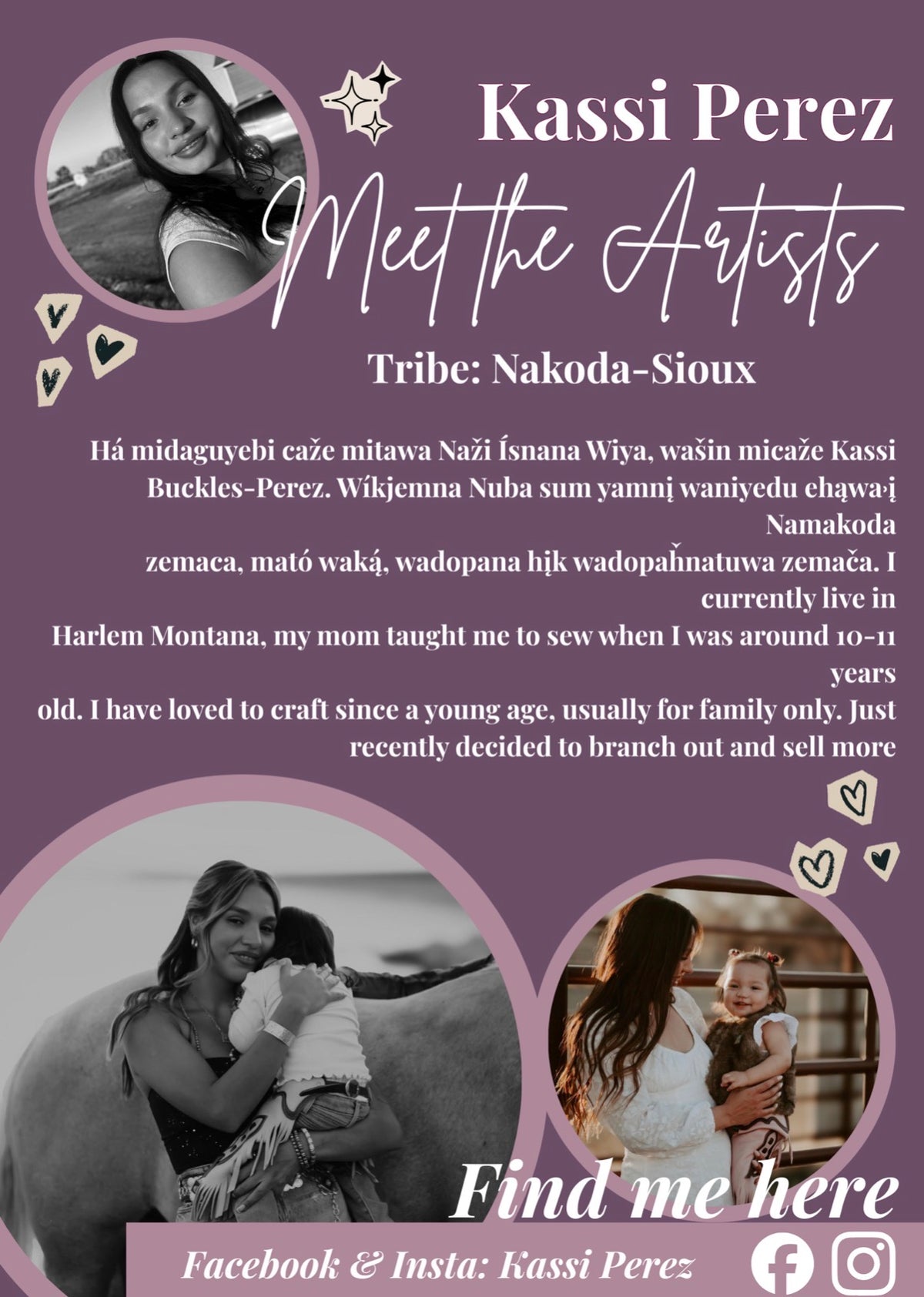 Welcome to my website. My name is Selena Sandman-Wells & I am an enrolled member of the Chippewa Cree Tribe located in Montana. I am a first-generation business school graduate and have been pursuing my passion in wearable art since 2017. This website allows easy access to products I have for sale, such as beadwork, lashes, apparel, and accessories. You may also find current & past work on my social media. 🌿