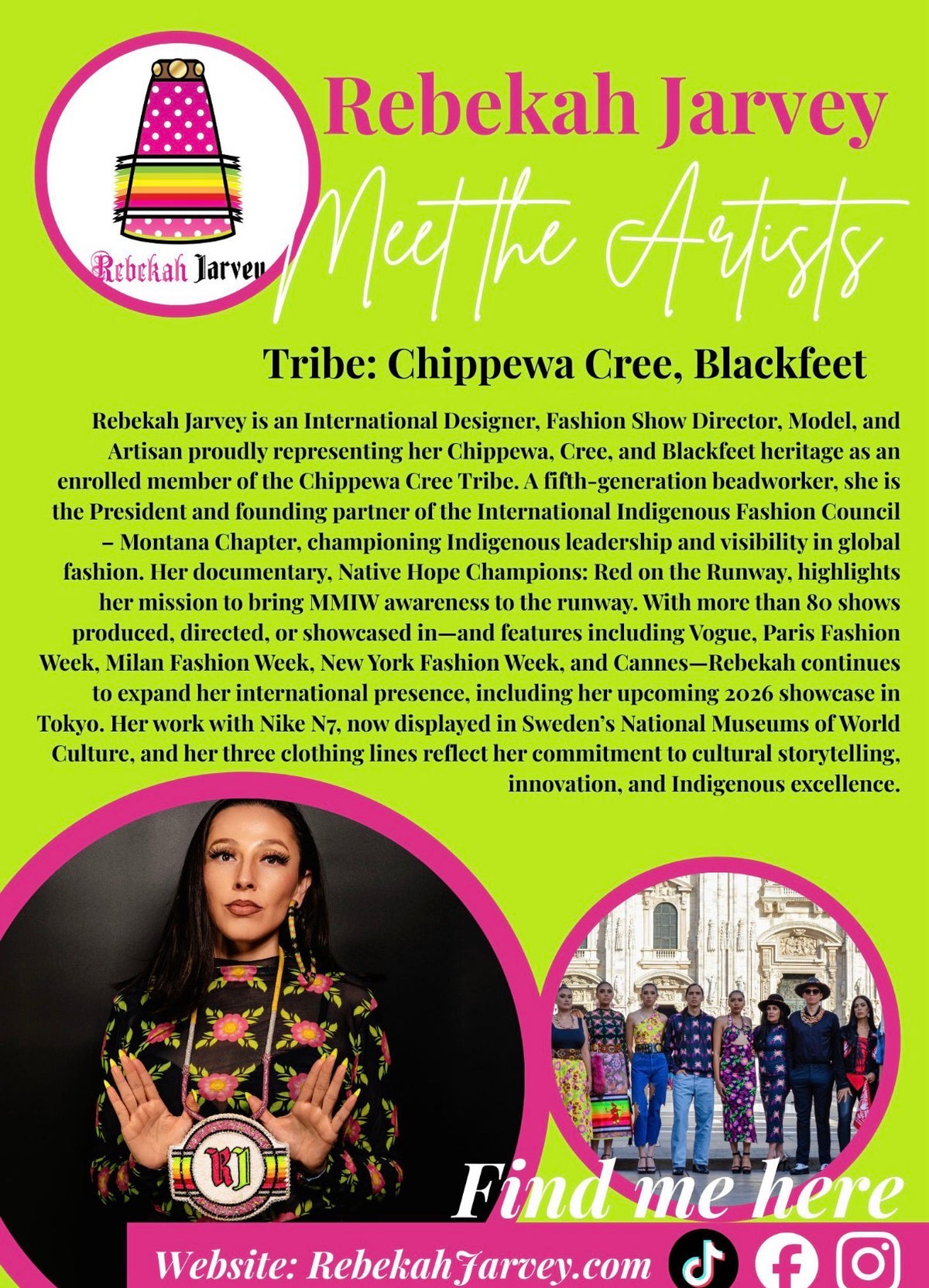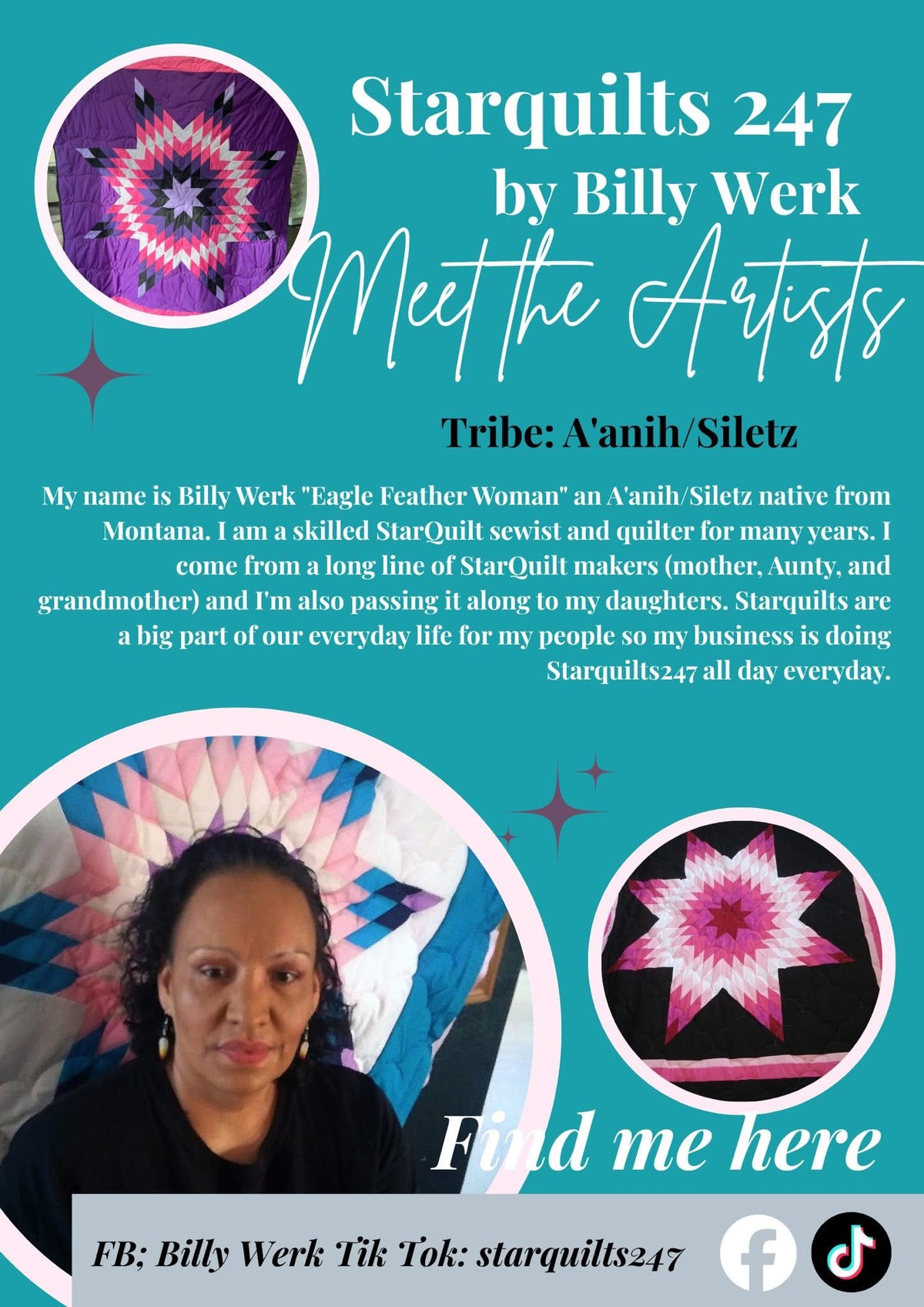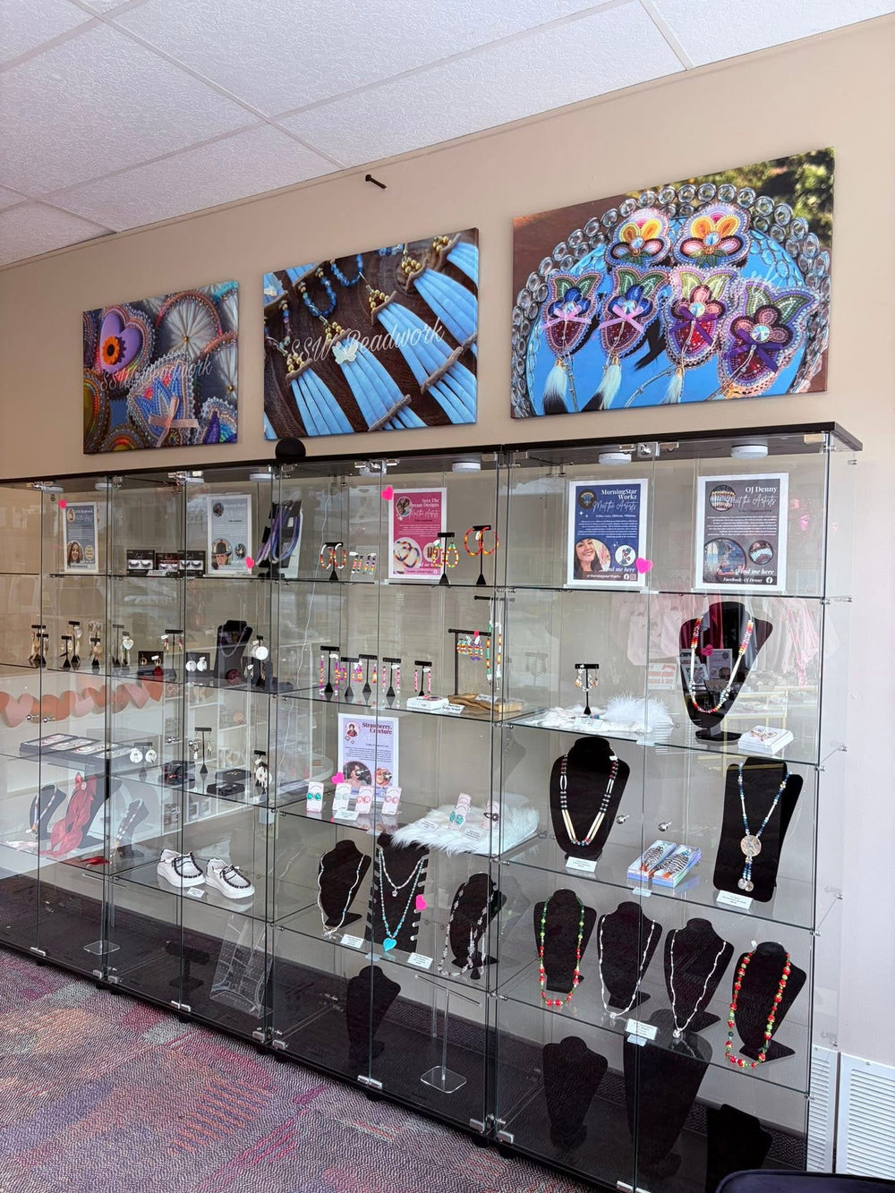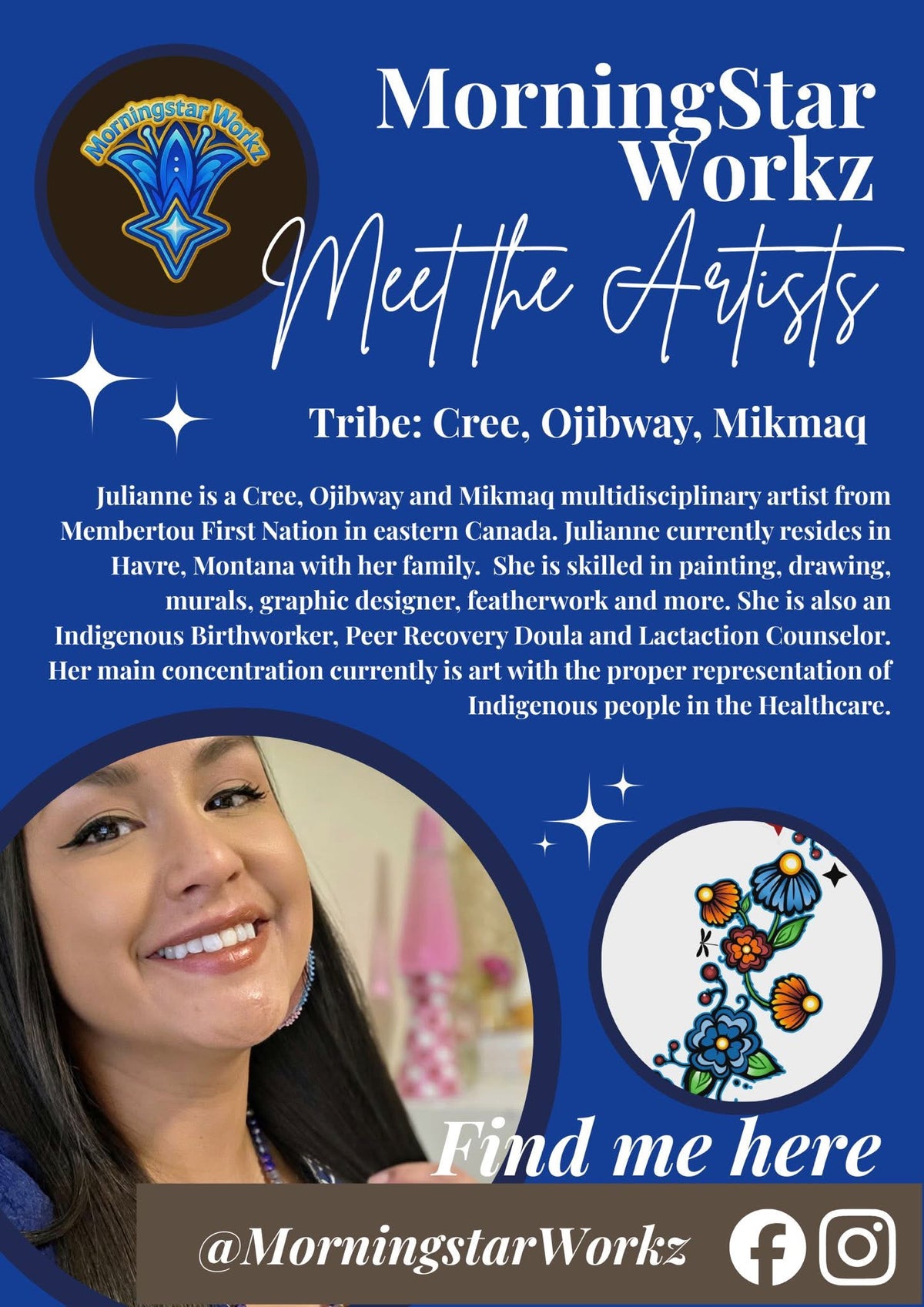 Welcome to my website. My name is Selena Sandman-Wells & I am an enrolled member of the Chippewa Cree Tribe located in Montana. I am a first-generation business school graduate and have been pursuing my passion in wearable art since 2017. This website allows easy access to products I have for sale, such as beadwork, lashes, apparel, and accessories. You may also find current & past work on my social media. 🌿